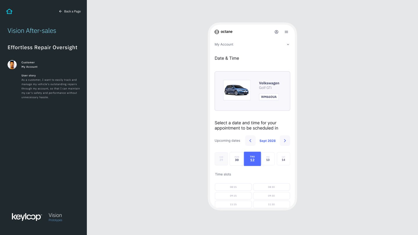 Key Feature: Developed a "Vision After-sales" prototype ecosystem, streamlining complex workflows like service plan management, workshop control, and guided check-ins into one cohesive interface.